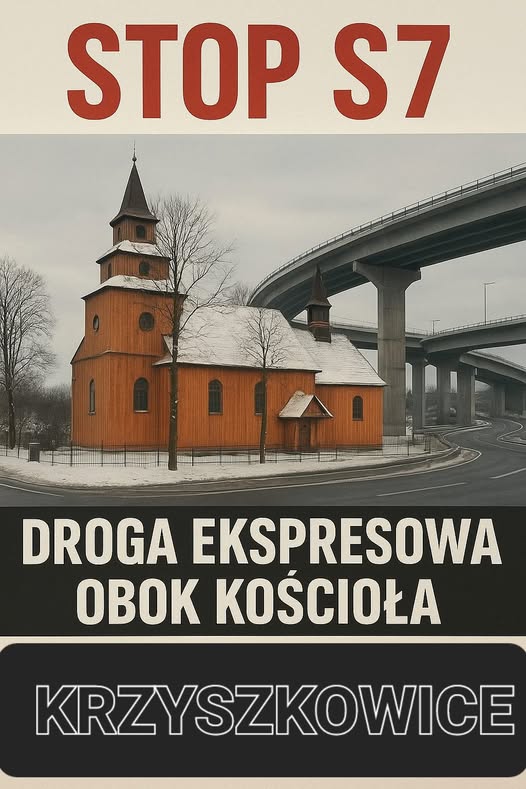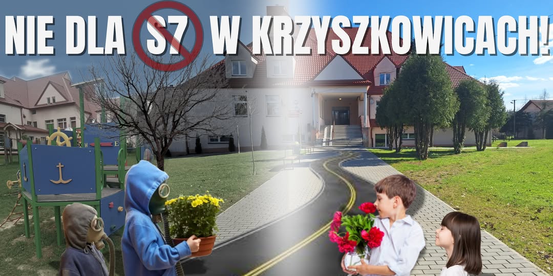 Dołącz do naszych działań i ratuj Krzyszkowice! Planowana budowa S7 oznacza zniszczenie naszej miejscowości - przedzielenie na pół pasem co najmniej 80 metrów szerokości na ogromnych nasypach i wycięcie naszych lasów. Droga może prowadzić 100 m od szkoły. Zniszczony może zostać nasz zabytkowy kościół. To wiele lat budowy - wywożenia ton ziemi, wstrząsów, hałasu, niezdrowego pyłu. To wyburzenie dziesiątek naszych domów.