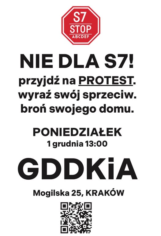 • Protest NIE dla S7 poniedziałek 1 grudnia godz. 13.00, Mogilska 25 Kraków